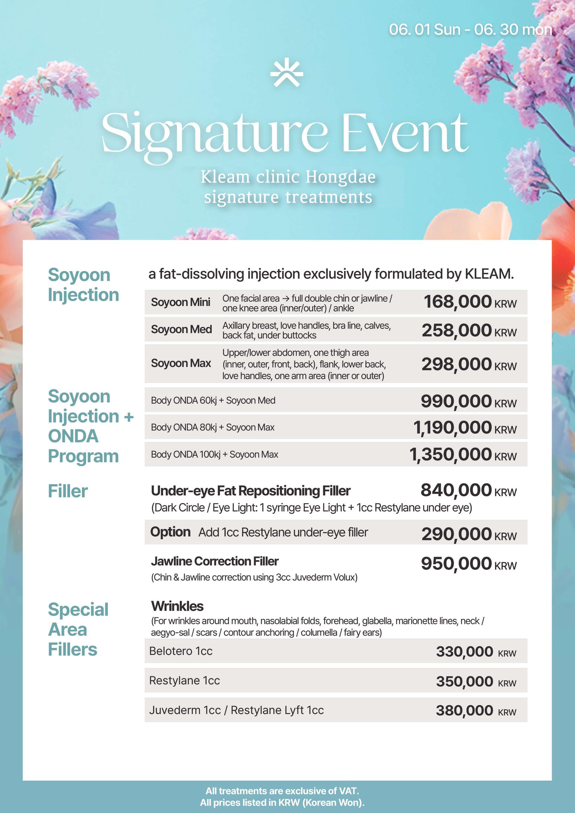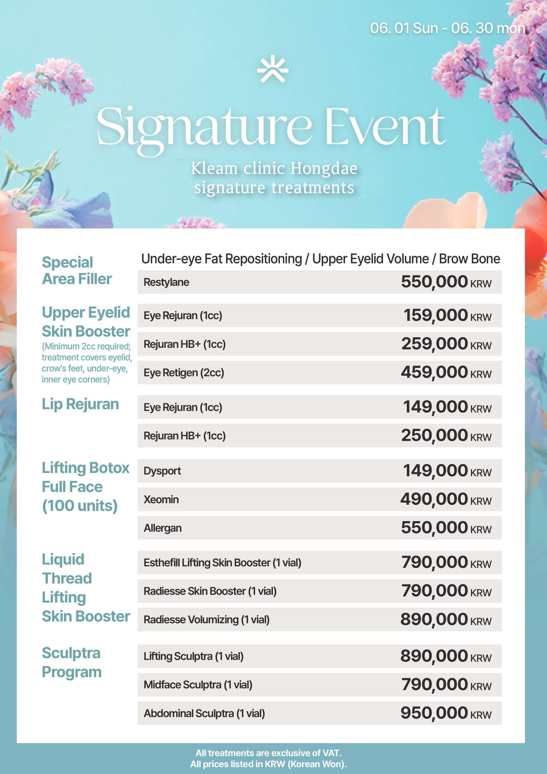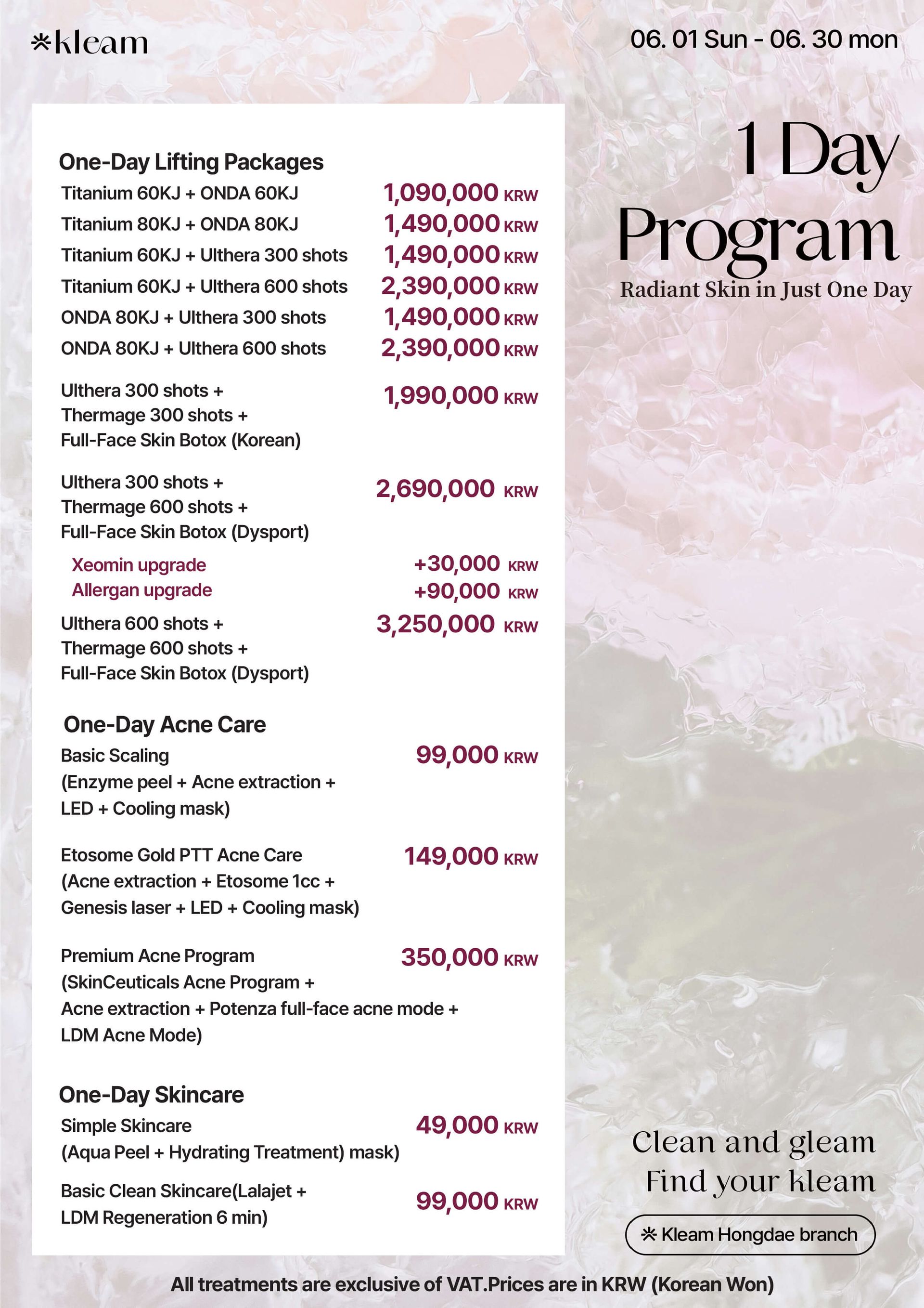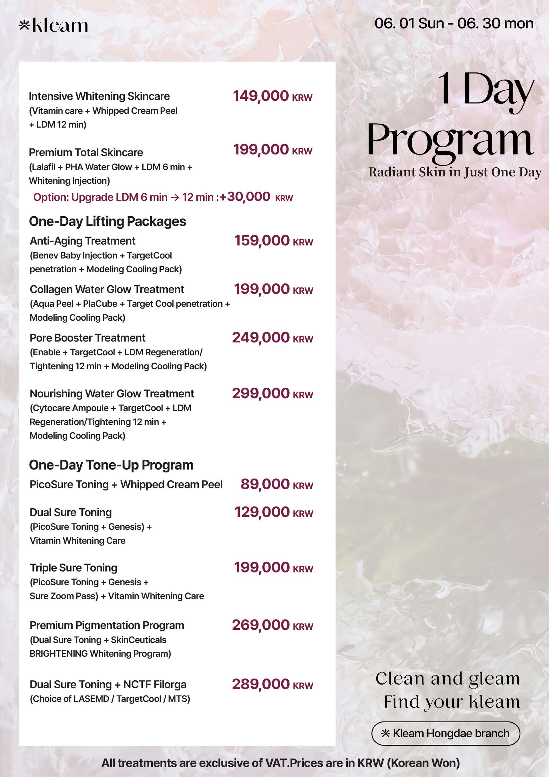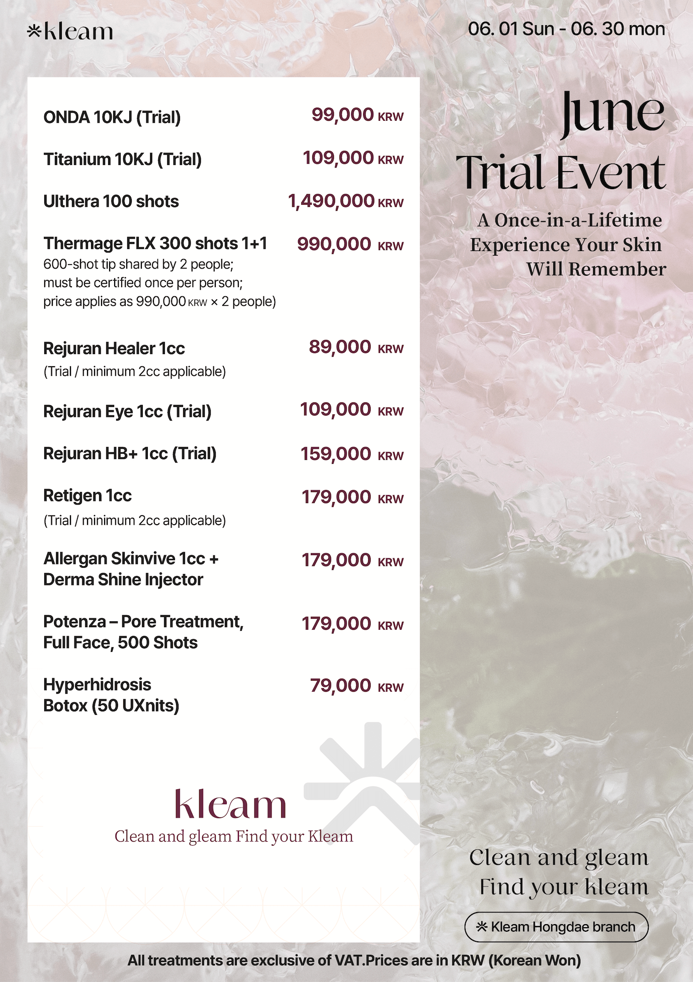 Erschwingliche und transparente Preise in der Kleam Clinic Hongdae